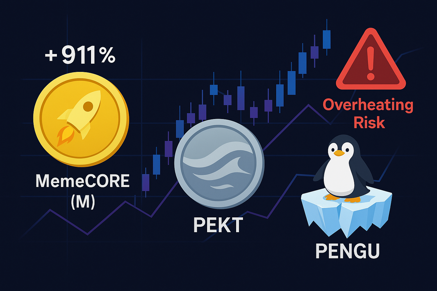 2025년 8월, MemeCORE·REKT·PENGU 세 밈코인이 암호화폐 시장에서 급등세를 기록하며 주목받고 있다. 그러나 단기 과열과 규제 리스크 우려도 동시에 제기된다.