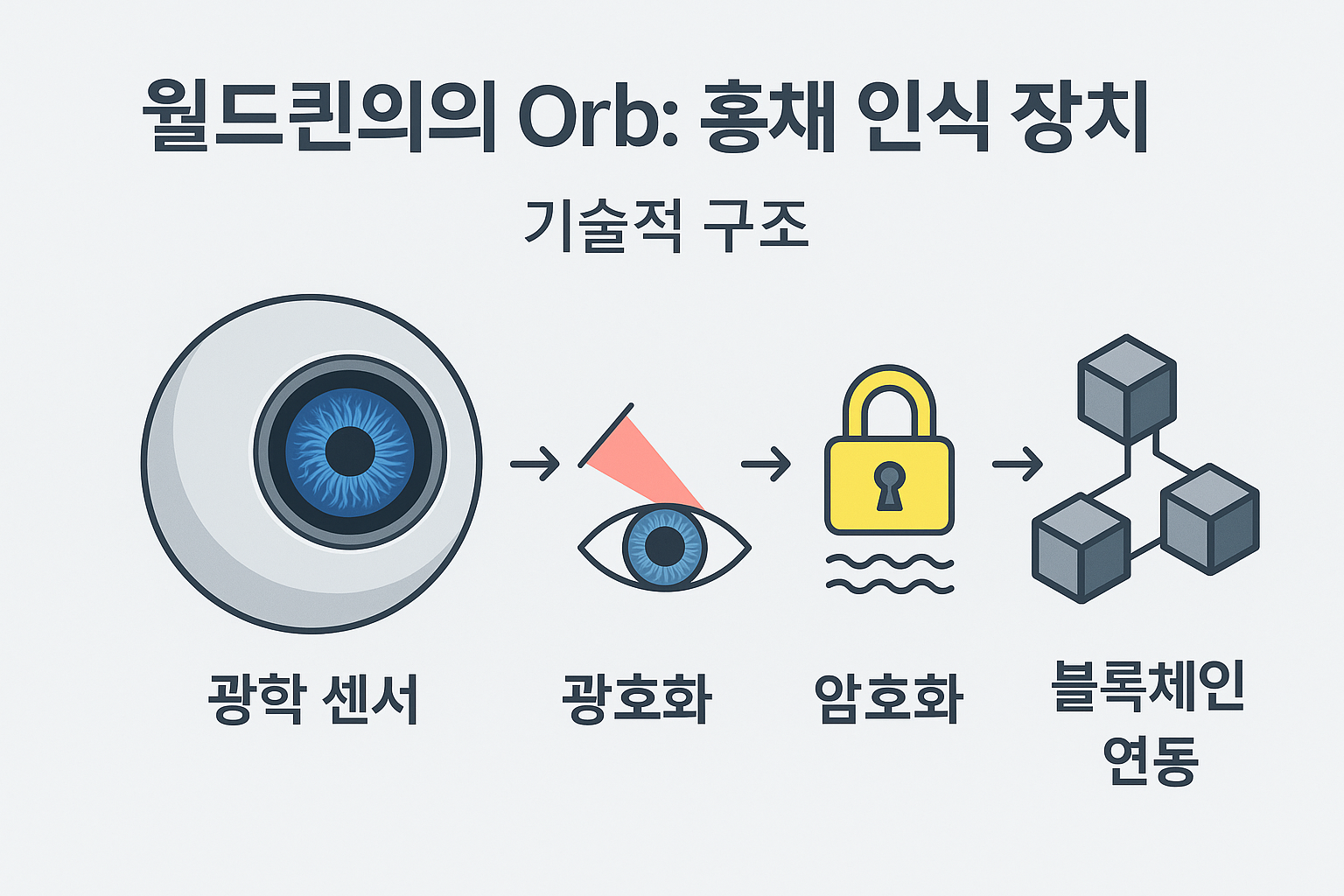 Orb는 홍채 패턴을 스캔해 원본으로 재현 불가능한 암호학적 해시로 변환·저장합니다. 이로부터 발급되는 World ID는 로그인·보팅·에어드롭 방지(멀티계정 차단) 등에서 사용되며, 인증 완료 사용자는 ERC-20 토큰 WLD로 보상을 받습니다. 스토리는 매력적이나, 토큰 경제가 보상 중심일수록 인플레이션·매도 압력 이슈가 발생할 수 있습니다.